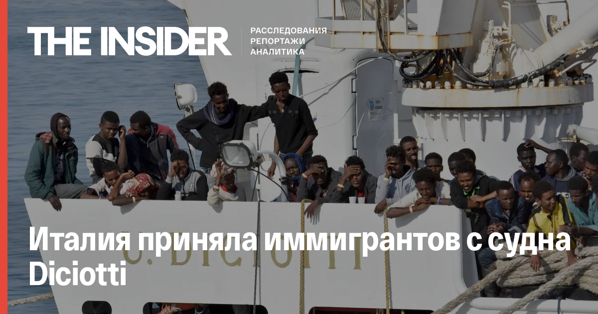 Италия пирняла иммигрантов с судна Diciotti 137, сообщает телеканал RAI. Они сошли на берег в порту сицилийского города Катания.