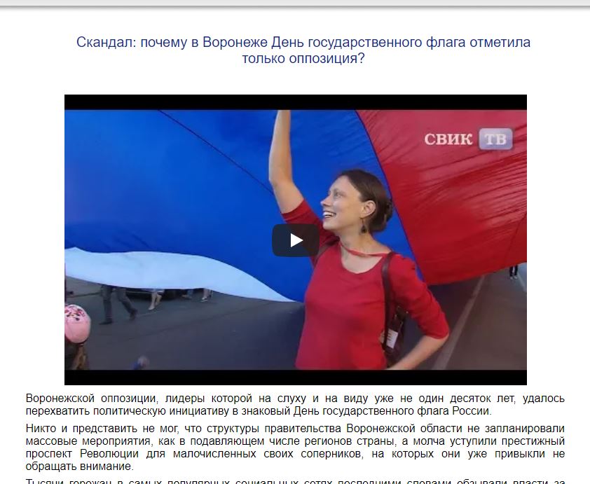 На одном воронежской интернет-ресурсе вышла статья: «Скандал: почему в Воронеже День государственного флага отметила только оппозиция?»