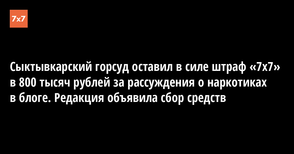 Сыктывкарский горсуд оставил в силе штраф «7х7» в 800 тысяч рублей за рассуждения о наркотиках в блоге. Редакция объявила сбор средств