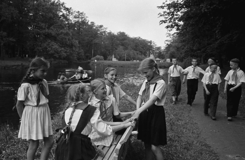 50-е годы. Пионеры в Центральном парке культуры и отдыха имени С. М. Кирова в Ленинграде (Санкт-Петербург)Фото: В. Логинов/РИА Новости Колготки появились только на последних курсах института, а так носили чулки такие вязаные. У меня где-то в шкафу до сих пор лежит пояс с резинками, к которому чулки пристегивались. А в нежном возрасте и девочки, и мальчики носили лифчик — такой безрукавчик ниже пупа, застегивался спереди или сзади на пуговки, и к нему цеплялись чулки.