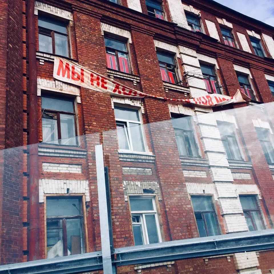 На доме по Ремесленной улице надпись: «Мы не хотим жить под мостом!» В 65 сантиметрах от этого дома к чемпионату мира стали строить Серный мост, который соединяет Петроградскую сторону с Васильевским островом. Там шумно, неудобно, воздуха не хватает. «Путин, помоги», — пишут жители.
