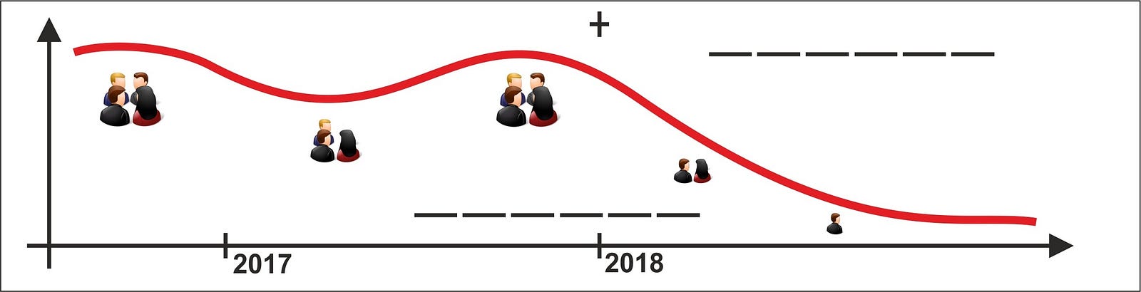 Ø После “отлёта” экс-губернатора в московское заведение на “курс интенсивной поведенческой терапии”, Общественная Палата РМЭ и Общественные Советы при госорганах РМЭ по инерции весь 2017 год удерживали свою динамику, плавно модифицировавшись своей активностью в позитивный фон для региональной предвыборной кампании. Без прямой связки, но в пользу центрального кандидата на пост губернатора Александра Евстифеева. В гражданскую подпорку указанного претендента — Штаб общественной поддержки Евстифеева — подтянули противников и молчунов-сторонников ушедшего режима. Многие из тех и других некогда состояли или состоят сейчас в ОП и ОС-ах. Сентябрьские выборы в прошлом году предсказуемо закончились, потом едва ли не сразу и крайне неожиданно для новой команды региональных управленцев разгорелся скандал с громким демаршем председателя ОП РМЭ Владислава Зотина. В декабре случилось быстрое собрание (не самой Палаты, а лишь совета Палаты) по смещению Зотина с его должности, а январе 2018 года под покровом ночи и чуть ли не нарушив региональный закон о положении ОП ему нашли секретную замену. Ос-ы тоже вошли в сумятицу. И всё, мониторинг по графику показывает резкий спад энергичности данных гражданских институтов по всем фронтам. Удивителен ещё один увесистый аспект — при Маркелове балом правил авторитаризм, при Евстифееве же замечается очевидные смягчение риторики и сбавление накала ⇩