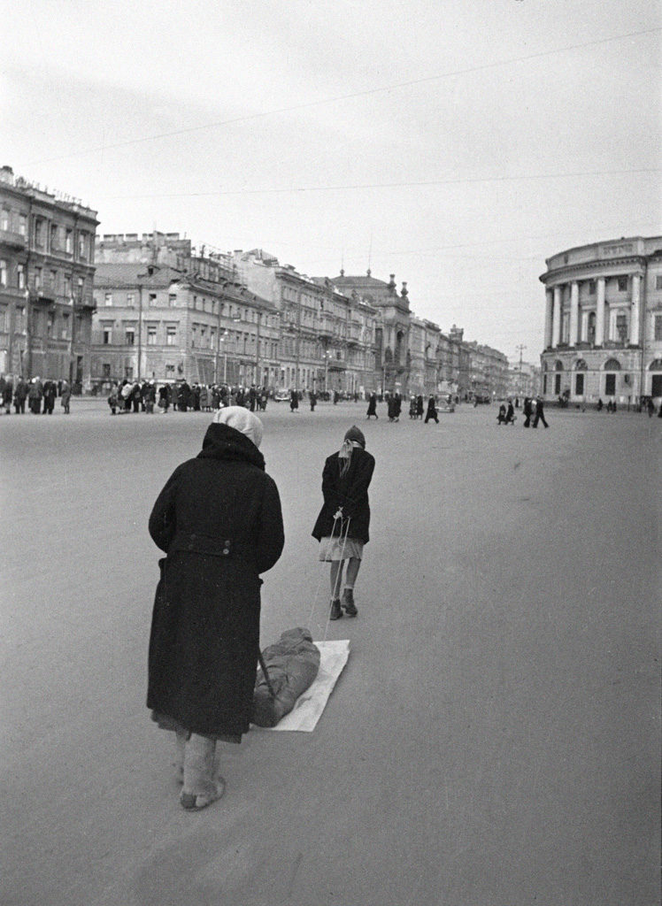 Женщина и девочка-подросток тащат завернутый в одеяло труп по Невскому проспектуФото: RIA Novosti archive, image #762/Michael Trahman/commons.wikimedia.org «Мне кажется, что блокада для Петербурга — такая же важная тема, как Холокост для евреев и геноцид для армян, — говорит он. — И ее неотрефлексированность приводит к еще большей угрюмости наших жителей и висит над нами как неисполненный долг. Кроме того, попытки присвоить этот праздник приводят к чудовищному кощунству: когда из полевых кухонь раздают еду, играют песни Шульженко и показывают военную технику. Ведь дело не в победоносной Красной армии, а в наших погибших прадедушках, прабабушках и других людях. Во всем мире умеют различать победу и память павших. Голландцы создали культ Анны Франк. Где культ Татьяны Савичевой?»