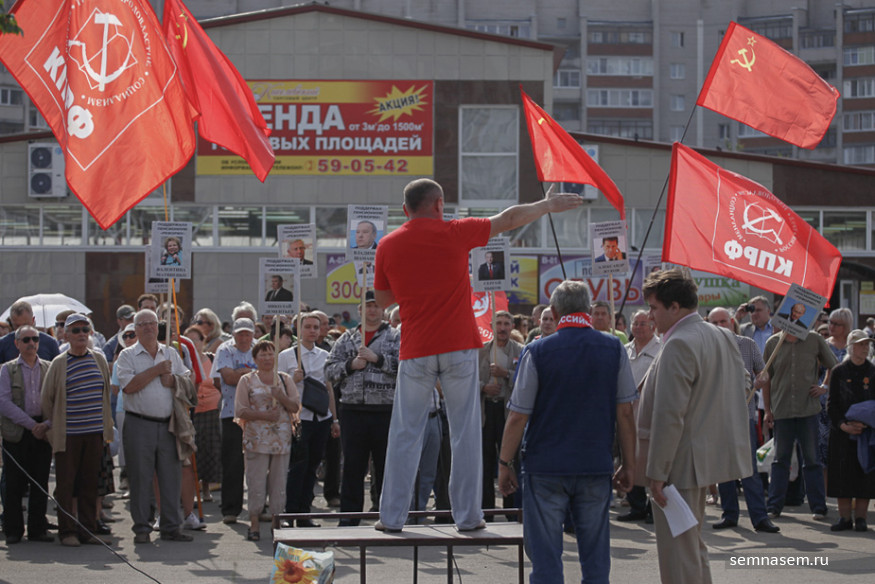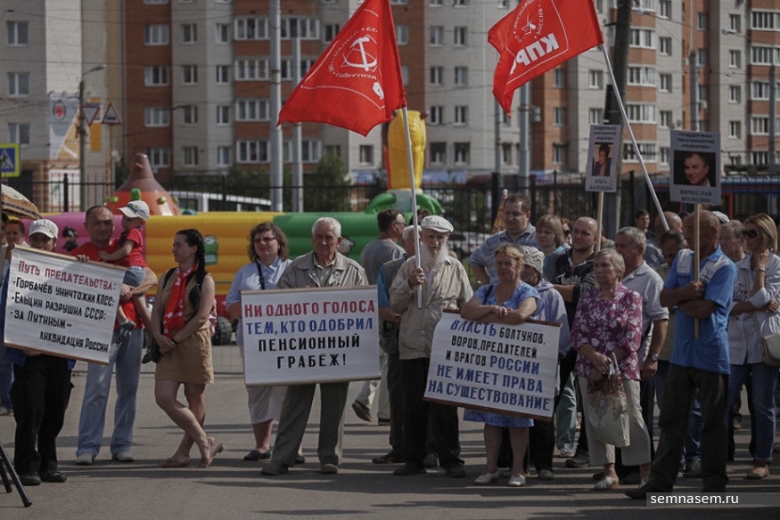 Смоленские коммунисты провели 2 сентября третью акцию против повышения пенсионного возраста. Первая состоялась в Смоленске 1 июля под проливным дождем у кинотеатра «Современник», вторая — 29 июля у кинотеатра «Октябрь». На этот раз коммунисты собрали своих сторонников у Киселевского рынка.