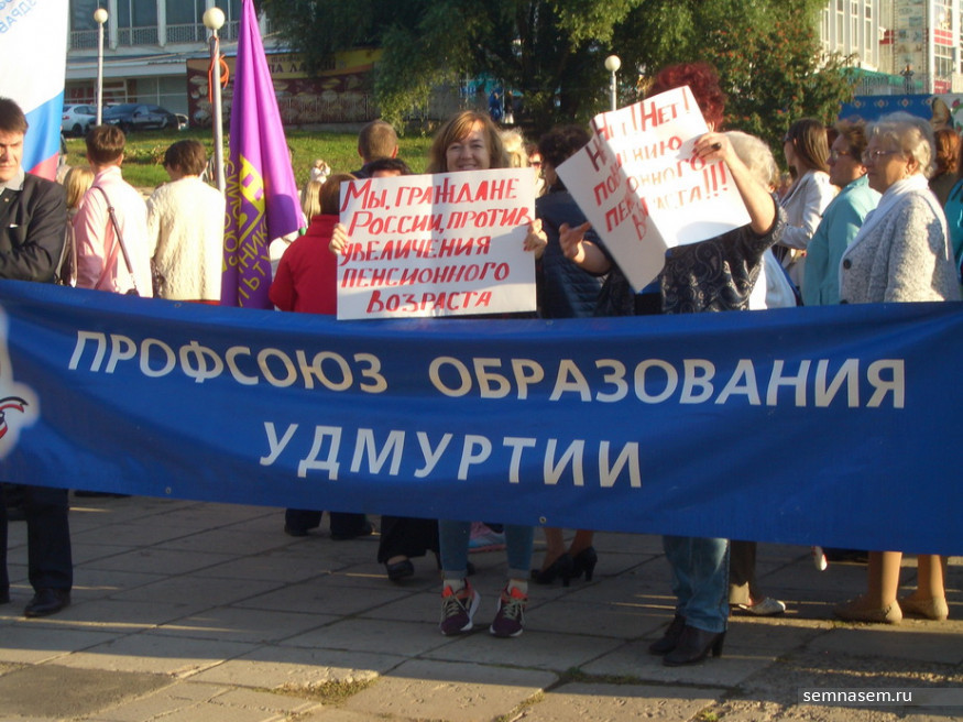 Федерация профсоюзов Удмуртии 4 сентября провела на Центральной площади Ижевска митинг против пенсионной реформы. Участники митинга потребовали: снизить предполагаемый возраст выхода на пенсию, сохранить прежний порядок выхода на пенсию «по выслуге», ввести прогрессивную шкалу подоходного налога и отменить специальные пенсии для госслужащих. Подробности — в репортаже корреспондента «7x7».