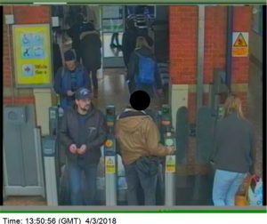 - Третье изображение (время: 16.11, суббота, 3 марта) показывает подозреваемых на железнодорожном вокзале Солсбери, откуда они отправляются обратно в Лондон.