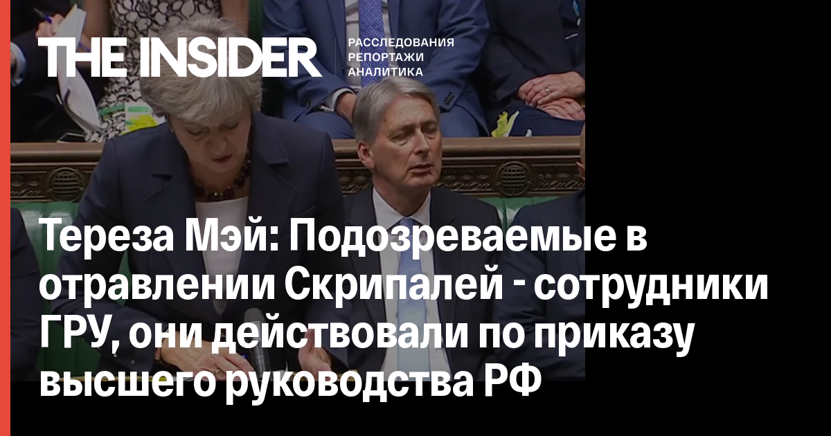 Тереза Мэй: Подозреваемые в отравлении Скрипалей - сотрудники ГРУ, они действовали по приказу высшего руководства РФ