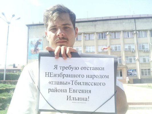 Клименченко стоял с плакатом у здания районной администрации с требованием об отставке главы Тбилисского района Евгения Ильина. Полицейские потребовали прекратить одиночный пикет.