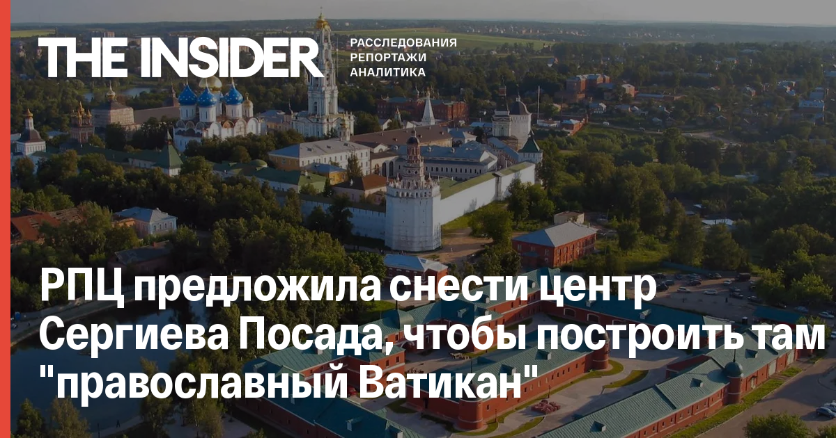 Русская православная церковь предложила создать в Сергиевом Посаде «православный Ватикан», сообщает «Русская служба Би-би-си». Для этого, согласно плану РПЦ, надо снести здание администрации города, два отеля, торговый центр, парк развлечений, дом культуры, крытый рынок и несколько жилых домов, расположенные в центре города.