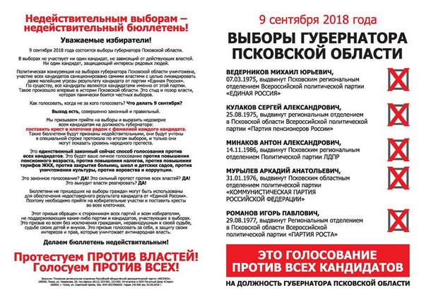 Листовка псковского отделения "Яблока" к выборам губернатора: