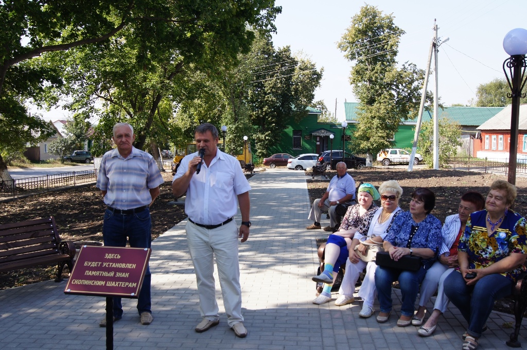 7 сентября в 11:00 в Скопине состоялось открытие сквера шахтёрской славы. Он создан по программе поддержки местных инициатив. Часть средств на благоустройство сквера была собрана неравнодушными жителями города, остальное выделили из регионального и муниципального бюджетов.
