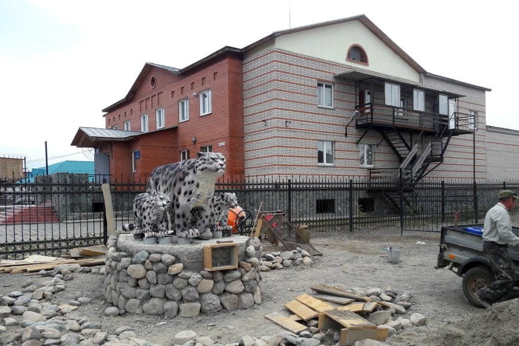 Статуя самки барса и двух котят появилась в центре села Кош-Агач, сообщила пресс-служба Сайлюгемского национального парка.
