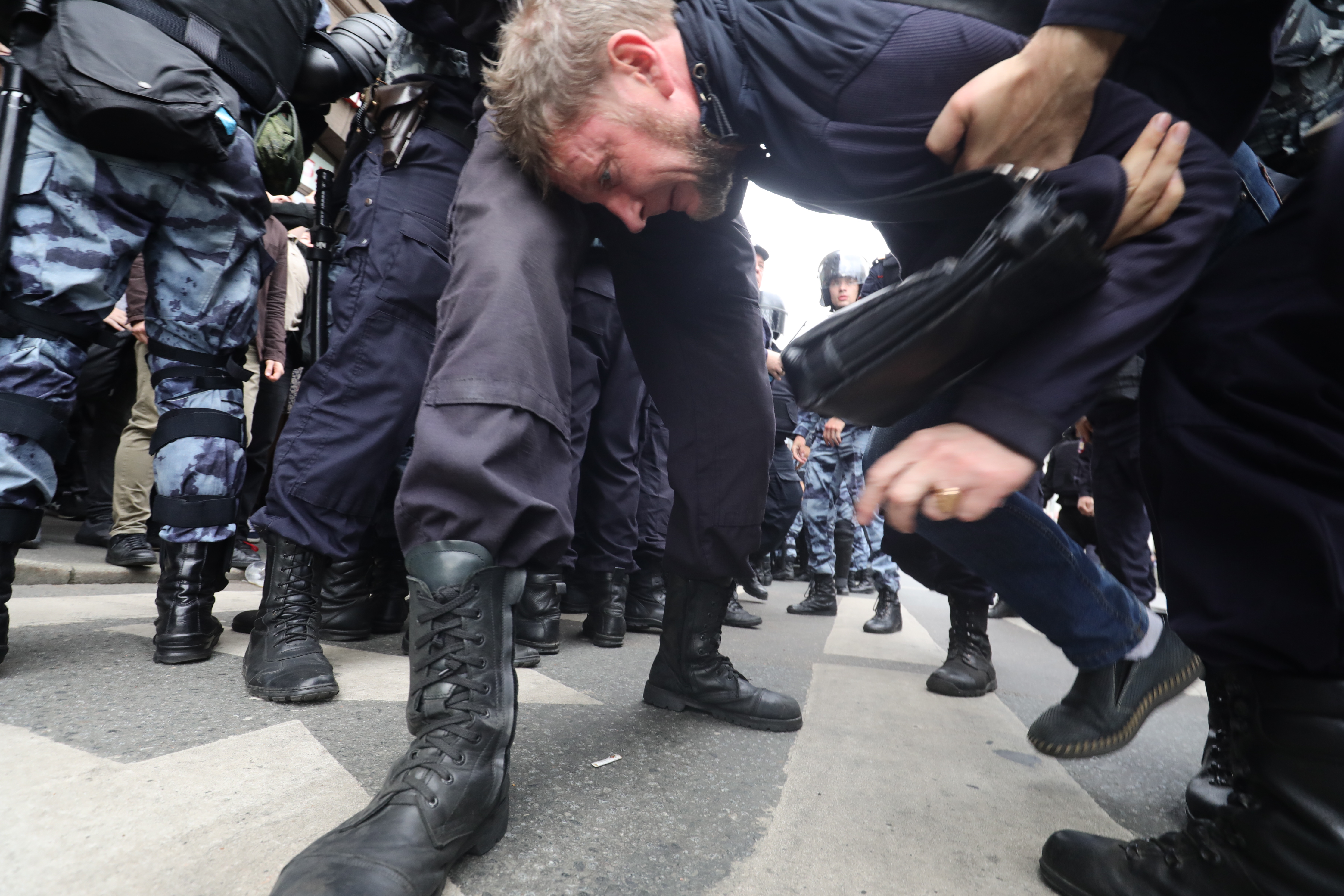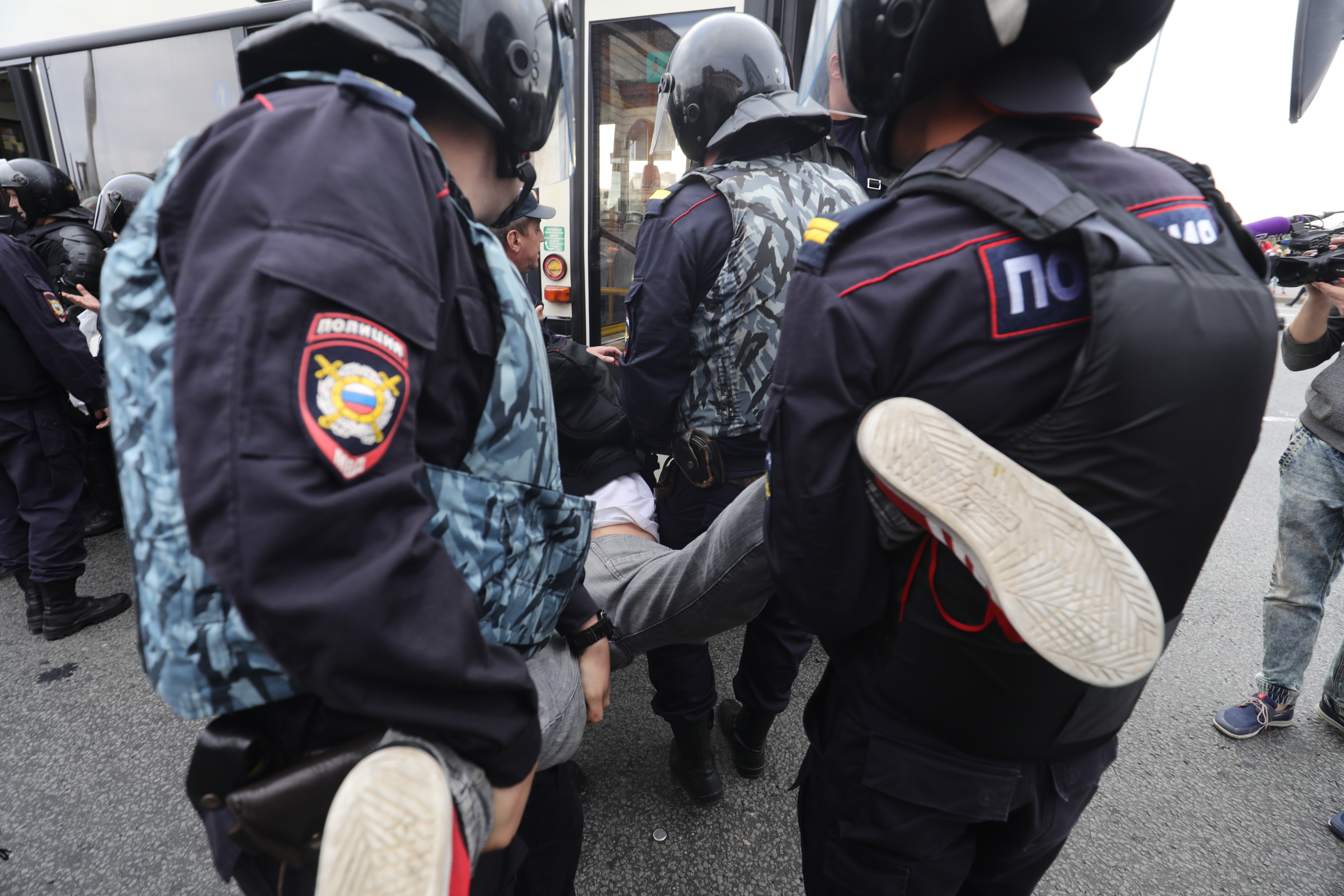 Задержание участника шествия на Пироговской набережной.