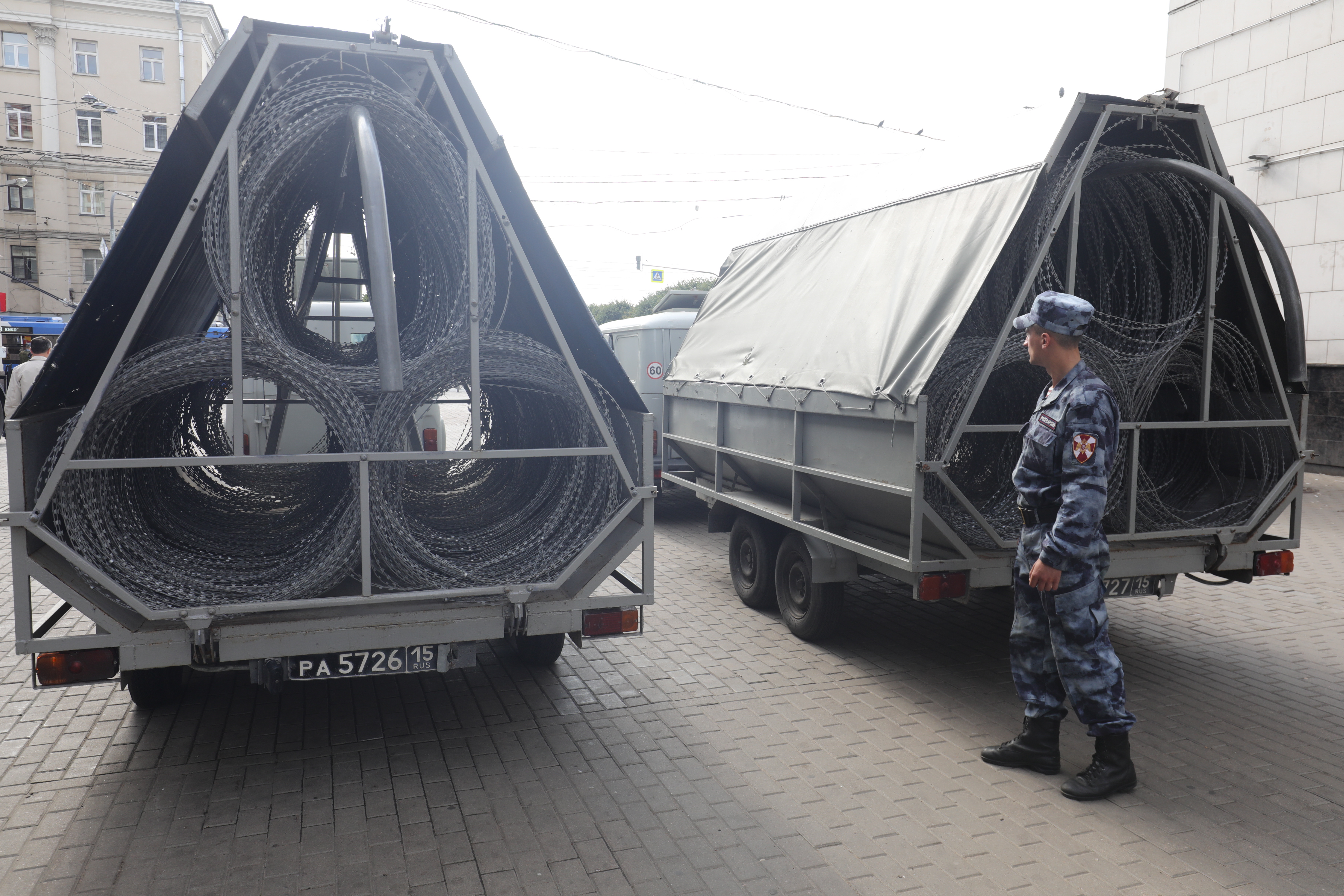 Машины с колючей лентой «Егоза» у Финляндского вокзала.