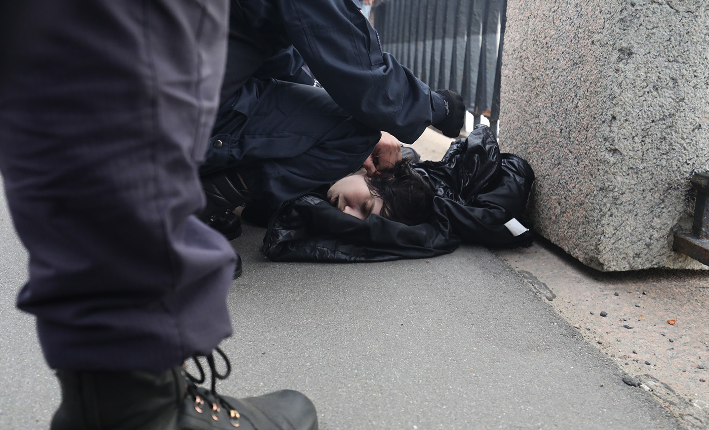 Задержание протестующего на улице Академика Лебедева.