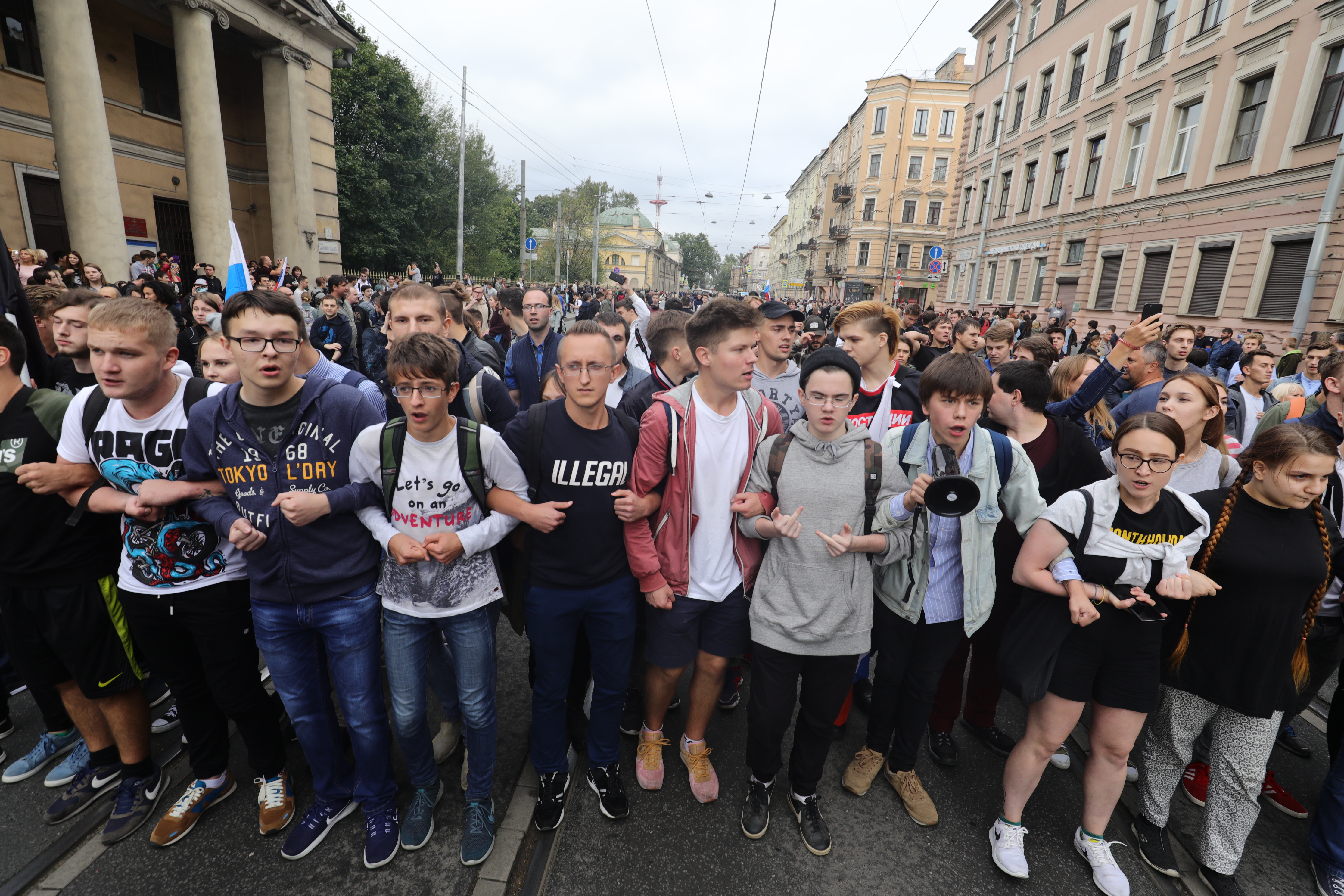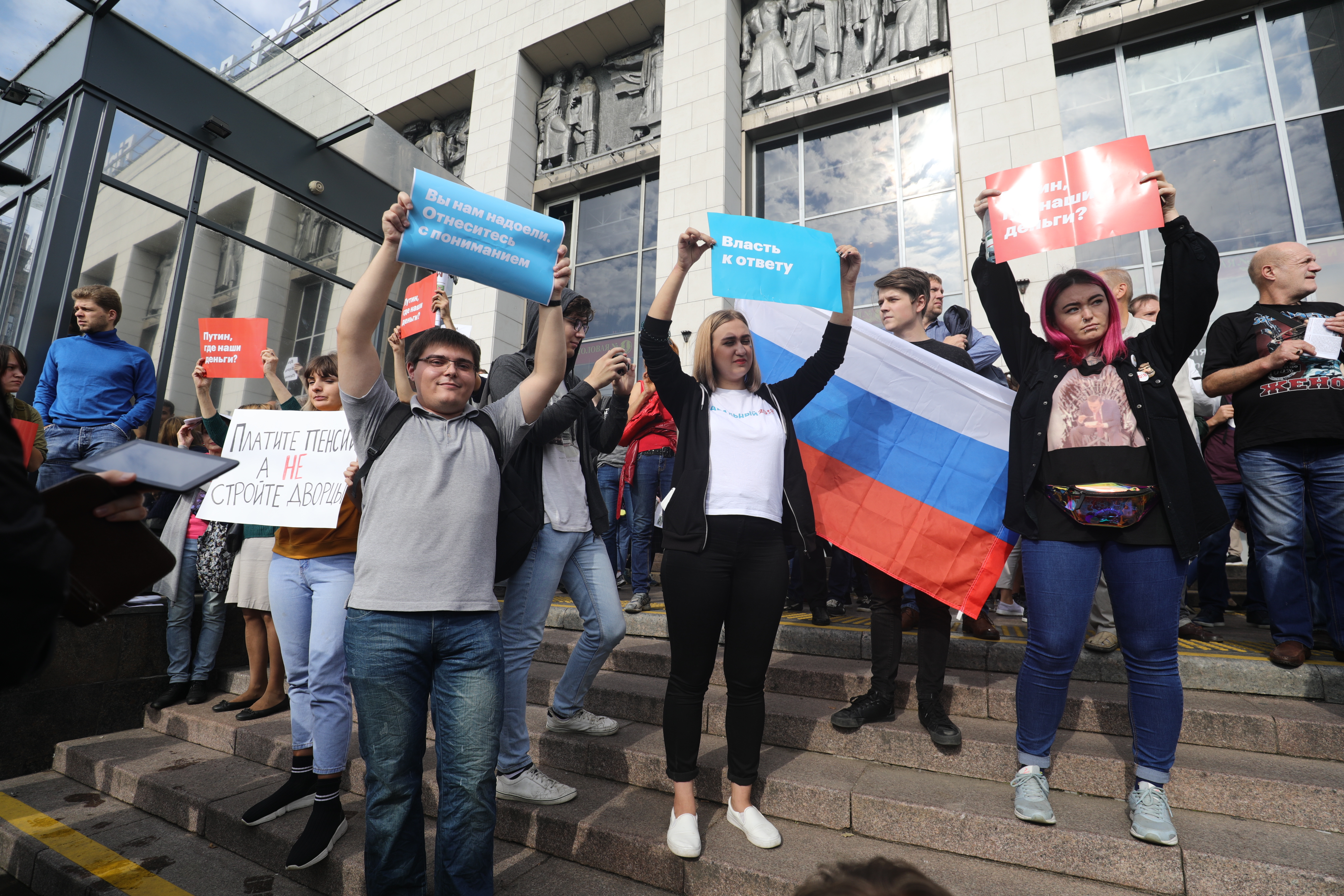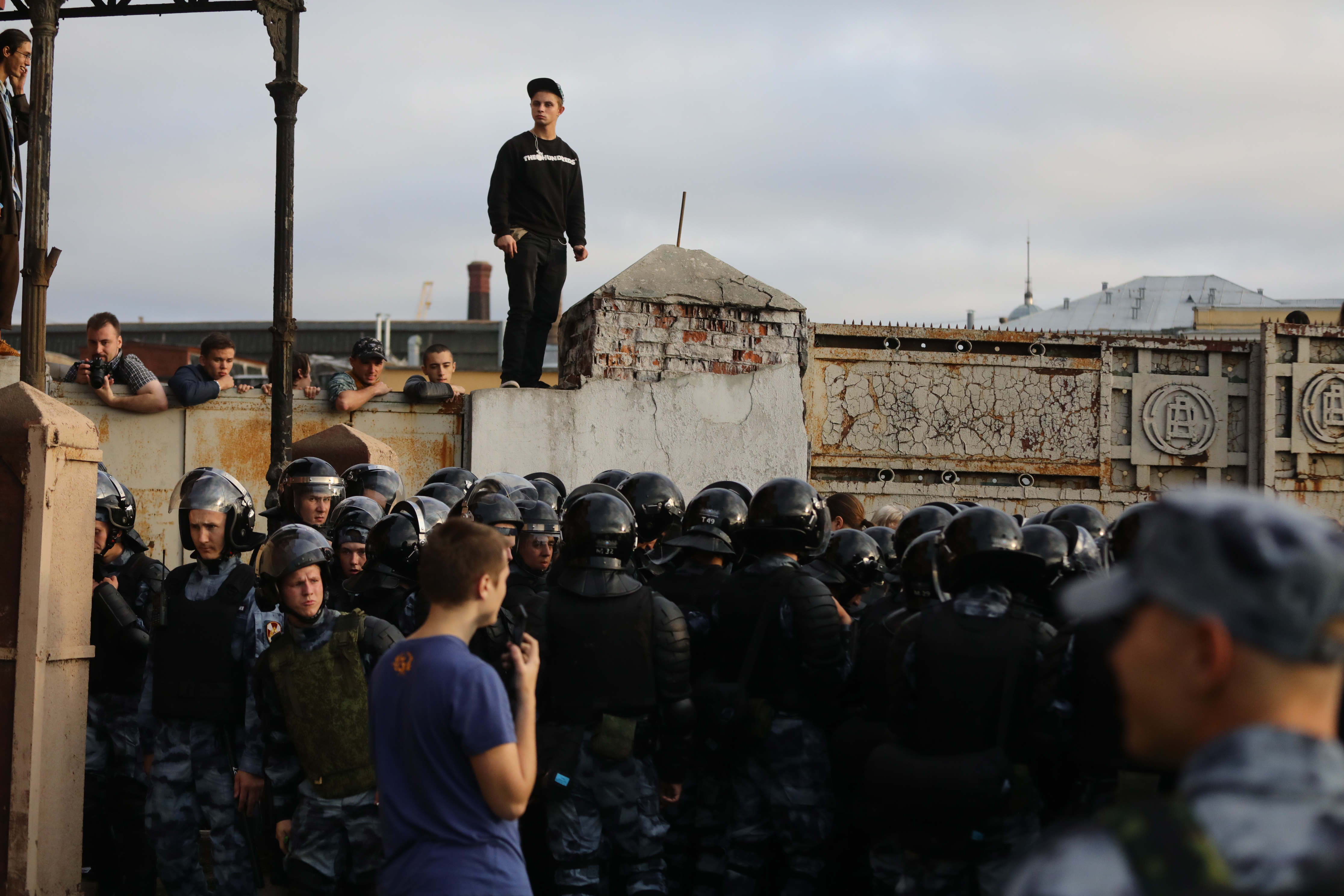 В Петербурге во время разгона полицией и Нацгвардией акции протеста против повышения пенсионного возраста были задержаны более 500 человек. Заблаговременно согласовав митинг, городская администрация за три дня до назначенной даты внезапно отозвала согласование — якобы из-за лопнувшей неподалеку трубы. Силовики действовали предельно жестко — задержанные рассказывают о неспровоцированном применении силы и избиении дубинками. В толпе кто-то поджег дымовые шашки, а полиция еще пригнала на место акции автомобили со «спиралями Бруно» — быстроразматываемой колючей лентой. Корреспондент «Медиазоны» Давид Френкель сфотографировал тех, кто вышел на митинг, и тех, кто его разгонял.