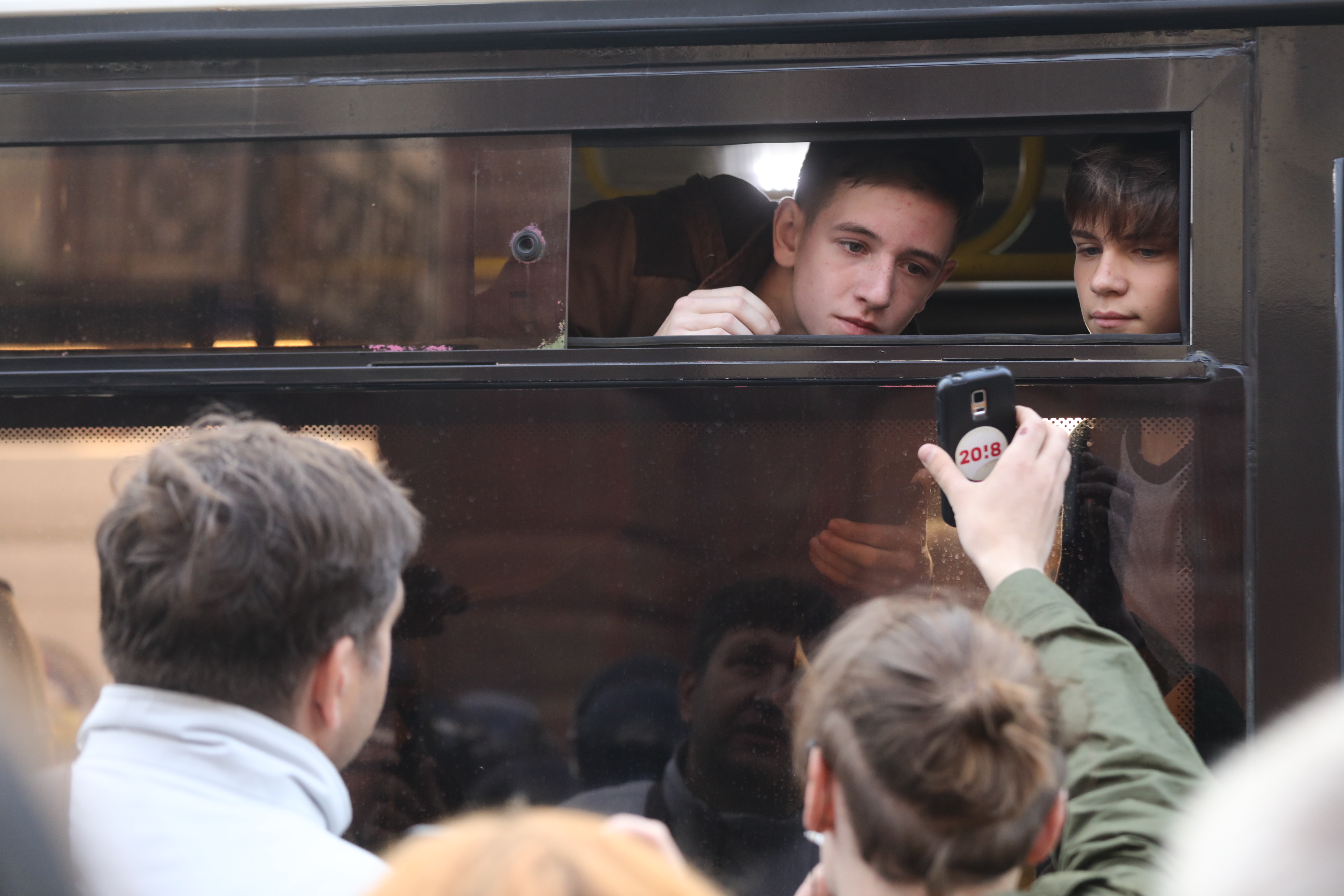 Протестующие на лестнице Финляндского вокзала.