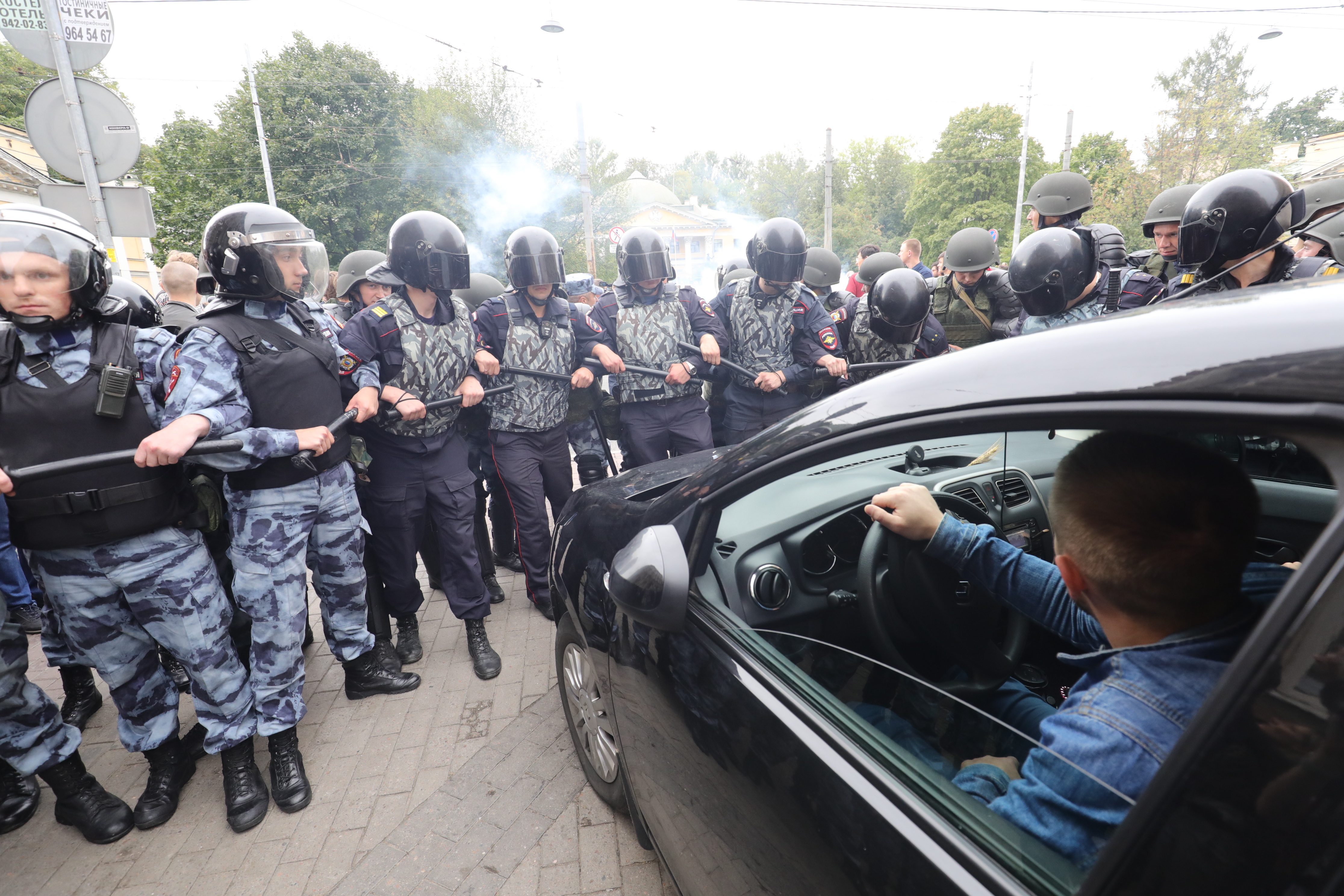 Попытка прорыва полицейского оцепления.