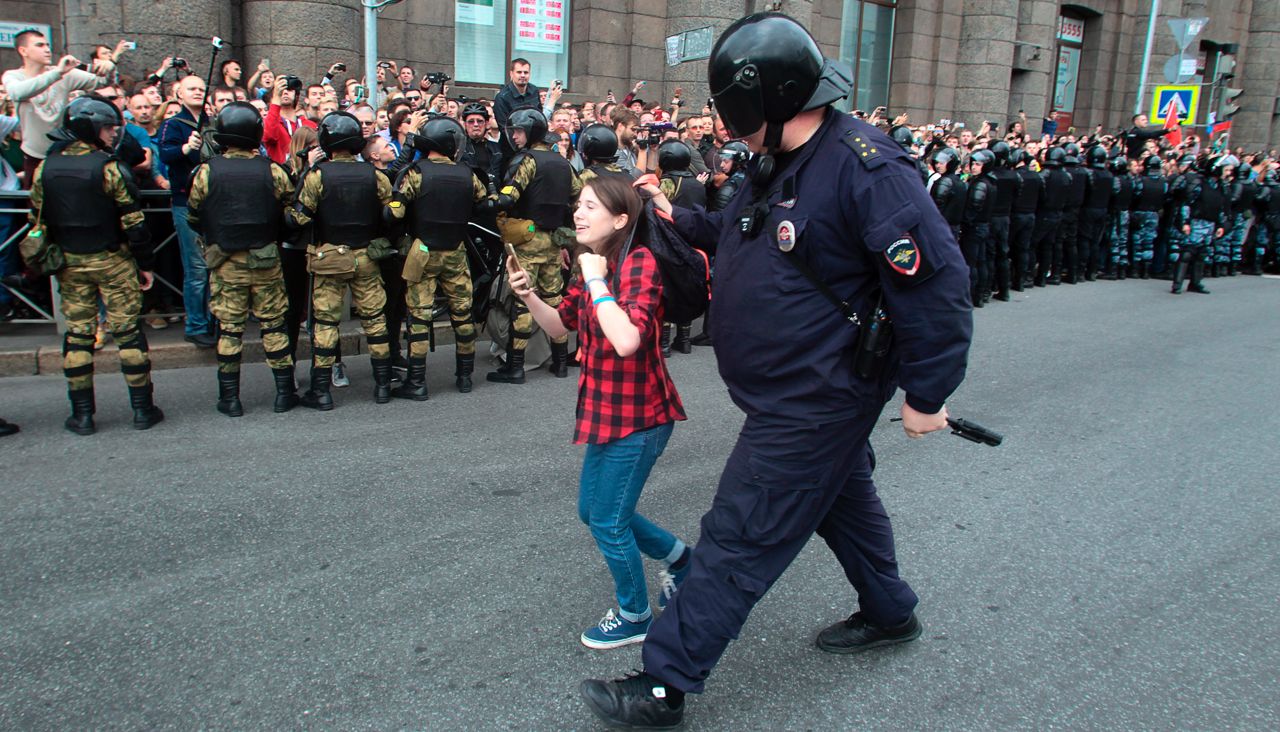 В Петербурге акция протеста против пенсионной формы, заявленная сторонниками Алексея Навального на 9 сентября, изначально была согласована с властями — однако за два дня до митинга мэрия предложила его перенести, и акция превратилась в несанкционированную. В итоге именно в Петербурге полиция и ОМОН обошлись с митингующими жестче всего: по предварительным данным, задержаны не менее 350 человек, среди которых есть несовершеннолетние. По просьбе «Медузы» Катерина Кузнецова наблюдала, как проходили митинг и спонтанное шествие к крейсеру «Аврора».