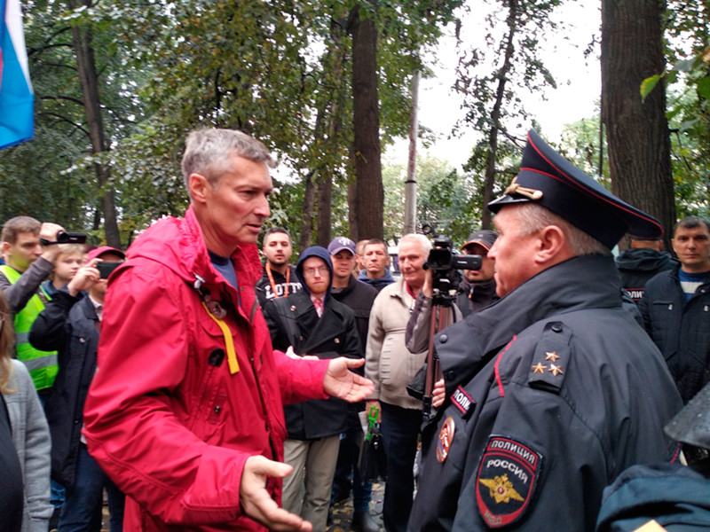 Бывший мэр Екатеринбурга, по данным СМИ, оказался во главе протестующих против пенсионной реформы в уральской столице. Толпа митингующих остановилась на тротуаре, натолкнувшись на оцепление бойцов СОБРа и ОМОНа. Лидером этой толпы стал Ройзман, который встал между полицейскими и митингующими и попытался добиться того, чтобы людям разрешили пройти. "Никто же не может запретить гулять по городу", - объяснял он. Однако полицейские отказались.