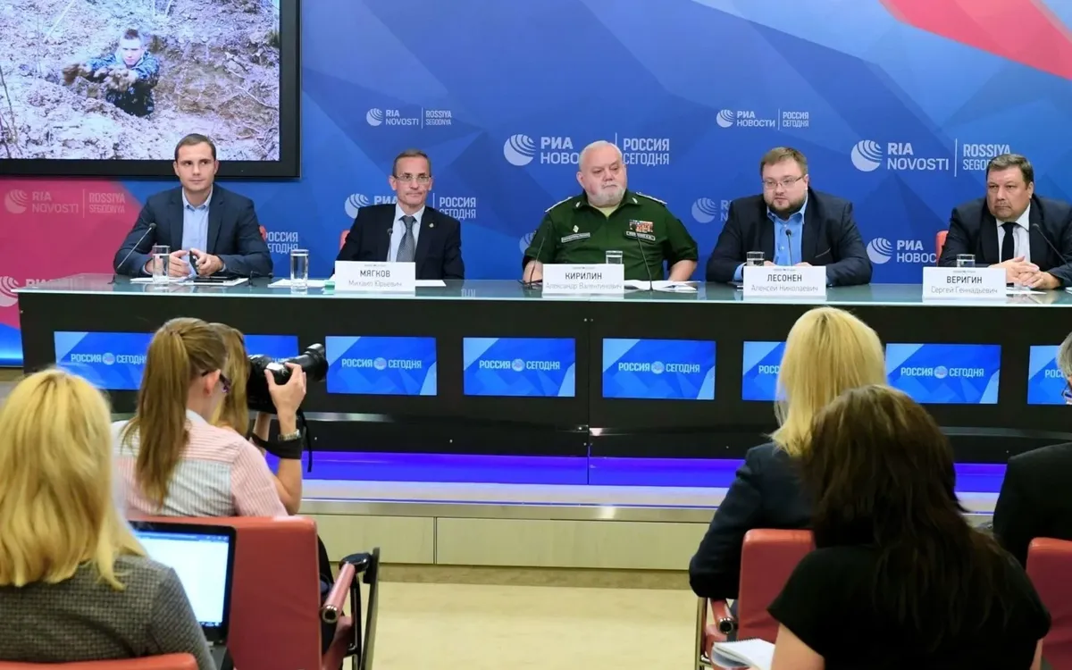 Михаил Мягков был на пресс-конференции самый красноречивый. Ведущий попросил его рассказать «о статистике, о бойцах, пропавших без вести в этом районе во время Великой Отечественной войны». Это было логично, потому что о самой экспедиции Мягков говорить не мог, его там, как мы уже говорили, не было.