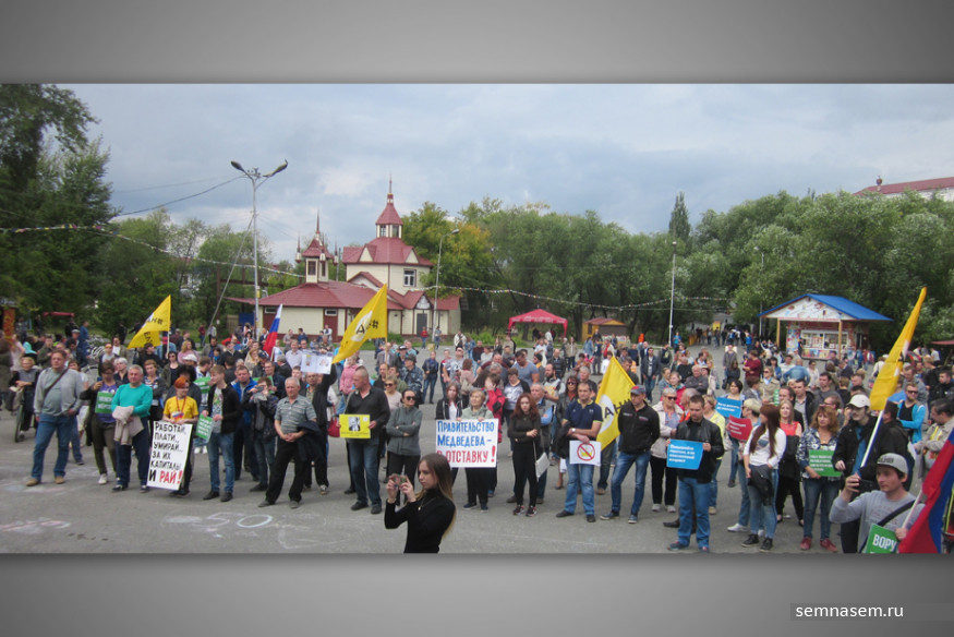 На площади у трибуны в Центральном парке культуры и отдыха собралось более 300 человек, в том числе жители районов области. Перед трибуной группа молодых людей держала растяжку «Пенсия или Путин?», а участники митинга — плакаты «Правительство Медведева в отставку!», «Повышайте пенсию, а не пенсионный возраст» и другие, а также флаги с надписью «#Надоел».