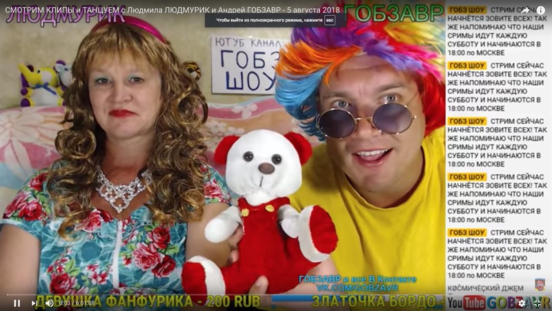 Фанфурик и ГобзаврФото: Скриншоты из видео: GOBZAVR/youtube.com За это же и ненавидят. Странные и унизительные челленджи (задания, которые Гобзавр и Людмила выполняют за деньги) стали поводом для появления целой армии тех самых хейтеров уже не только в сети, но и в реальной жизни. Семье звонят с угрозами, во время трансляции им перерезали провода, заливали суперклеем дверной замок, обливали краской дверь и самого Андрея. В комментариях зрители осуждают поступки блогера «за гранью добра и зла» и говорят, что матери Гобзавр отдает только 20 процентов заработанного, а она в эфире плачет и жалуется, что ей не хватает денег на лекарства.