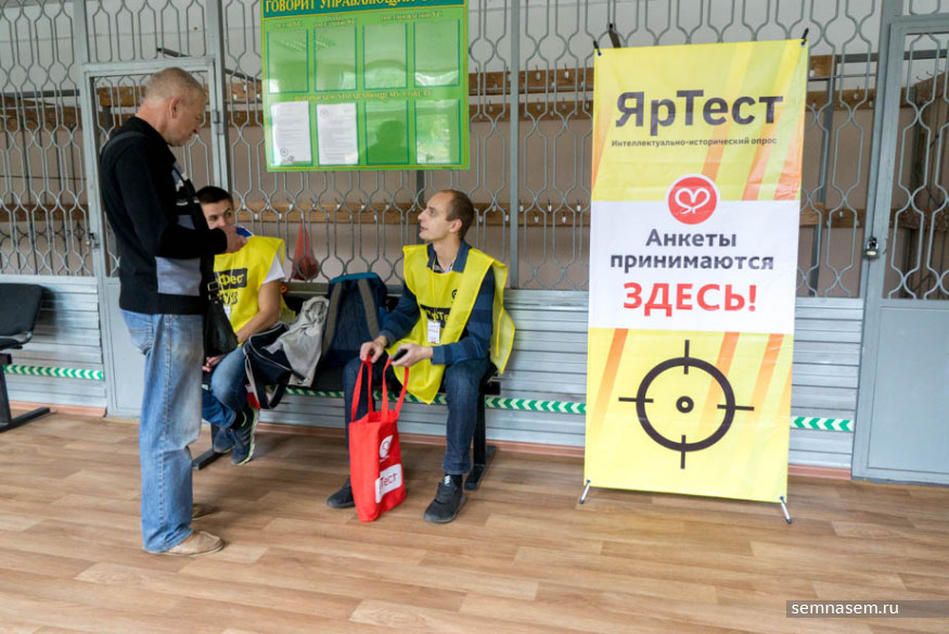 Первые итоги наблюдения тоже не были неожиданными — явка была невысокой (на 12:00 — 10,61%), рядом со всеми участками разместились волонтеры организации «Яргражданин», которые собирали у избирателей талоны об участии в викторине «ЯрТест» на знание истории региона. Наблюдатели и оппозиционные политики предположили, что таким образом «Единая Россия» контролирует явку своего электората. Кандидат-одномандатник «Яблока» Илья Шестериков требовал на участках в своем округе договоры аренды, по которым волонтеры «Яртеста» находятся в школах. Эти документы были не у всех. Ему дали номер телефона главы общественной организации «Яргражданин» Владислава Злобина, от имени которой проводится анкетирование, но тот не ответил на звонки. Офиса по адресу, который дали Шестерикову, не оказалось. По данным сайта «Руспрофиль», Владислав Злобин — это предприниматель из Удмуртии, который оказался в числе учредителей «Ярославского гражданина». Несколько наблюдателей написали жалобы на «Яртест» в облизбирком — его заподозрили в связях с «Единой Россией». Глава региональной избирательной комиссии Олег Захаров это опроверг, хотя в сети опубликовали фото приглашений на выборы от этой партии вместе с купонами «Яртеста».