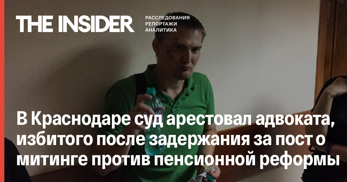 В Краснодаре суд арестовал адвоката, избитого после задержания за пост о митинге против пенсионной реформы