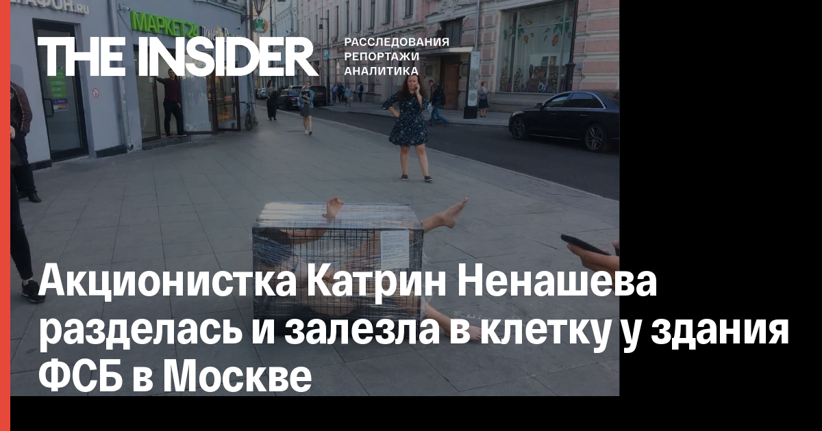 Акционистка Катрин Ненашева разделась и залезла в клетку у здания ФСБ в Москве