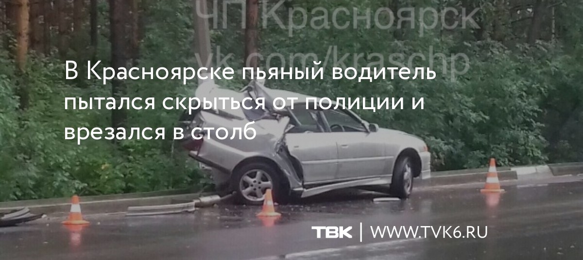В Красноярске пьяный водитель пытался скрыться от полиции и врезался в столб