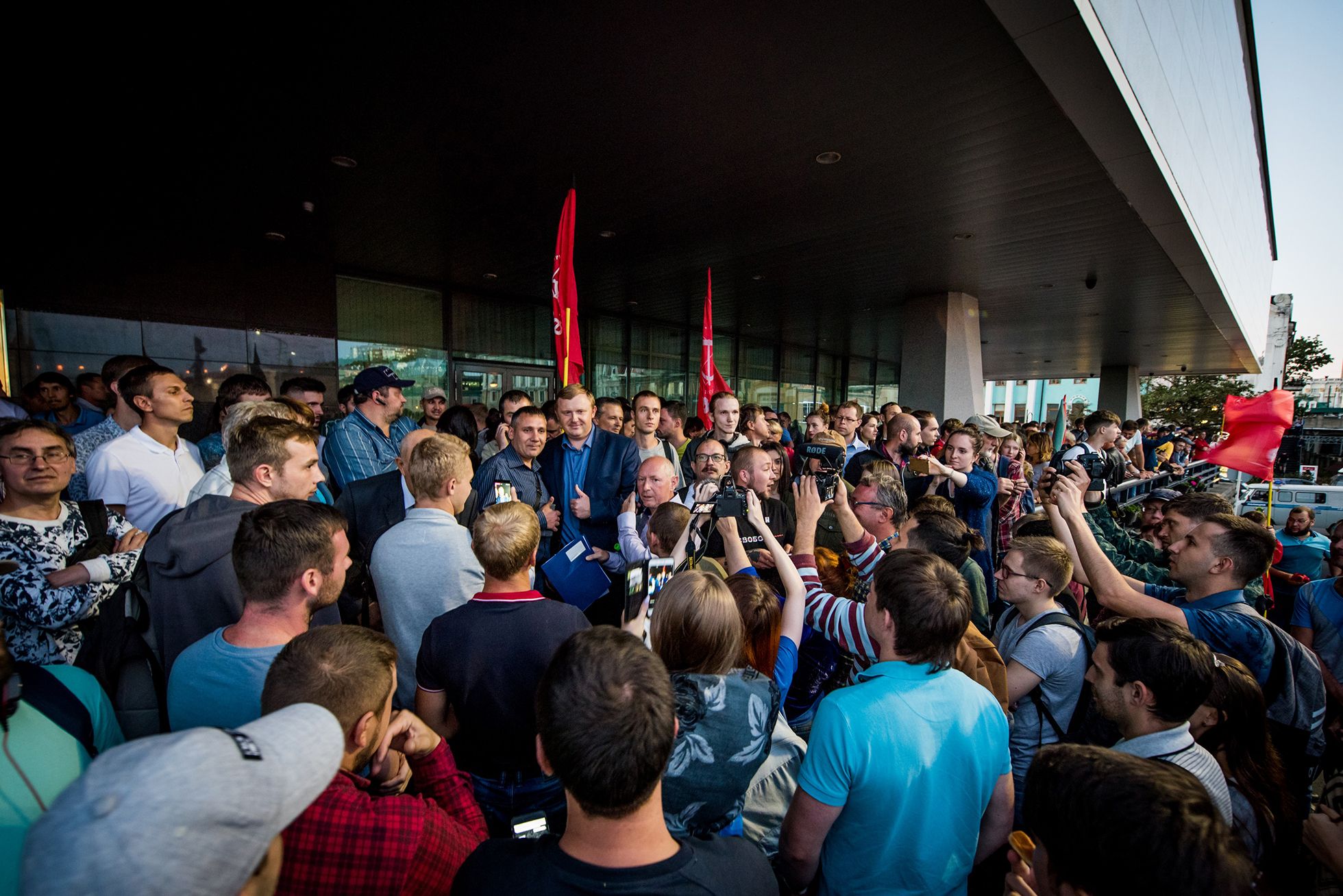 Антон Новгородов Кандидат в губернаторы Приморья от КПРФ Андрей Ищенко собрал своих сторонников на протестный митинг у краевой администрации во Владивостоке. Во втором туре выборов, прошедших 16 сентября, Ищенко уверенно лидировал, опережая своего конкурента от «Единой России» Андрея Тарасенко, однако при подсчете последнего процента голосов представитель партии власти внезапно вырвался вперед. В КПРФ заявили о фальсификациях на выборах, а сам Ищенко призвал выйти на бессрочный протест и объявил голодовку.