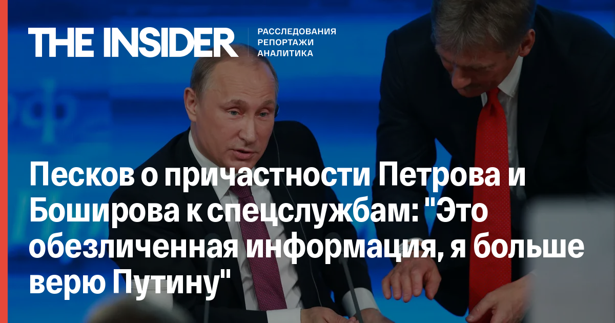 Песков о причастности Петрова и Боширова к спецслужбам: "Это обезличенная информация, я больше верю Путину"