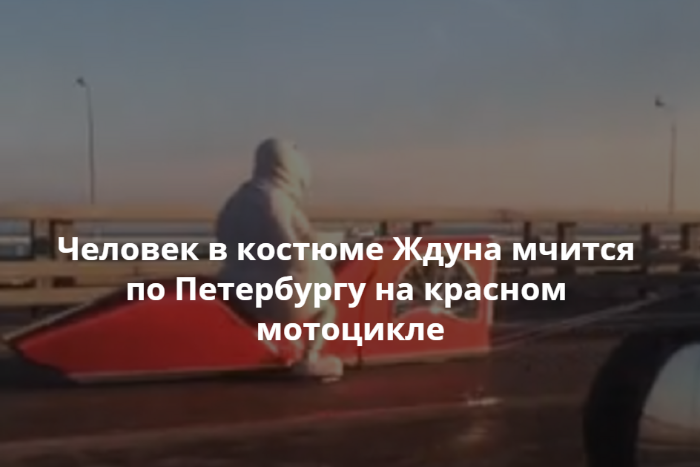 На дамбе в Петербурге заметили человека в костюме Ждуна, едущего на необычном мотоцикле. Видео опубликовали в группе «Признавашки ДТП и ЧП».