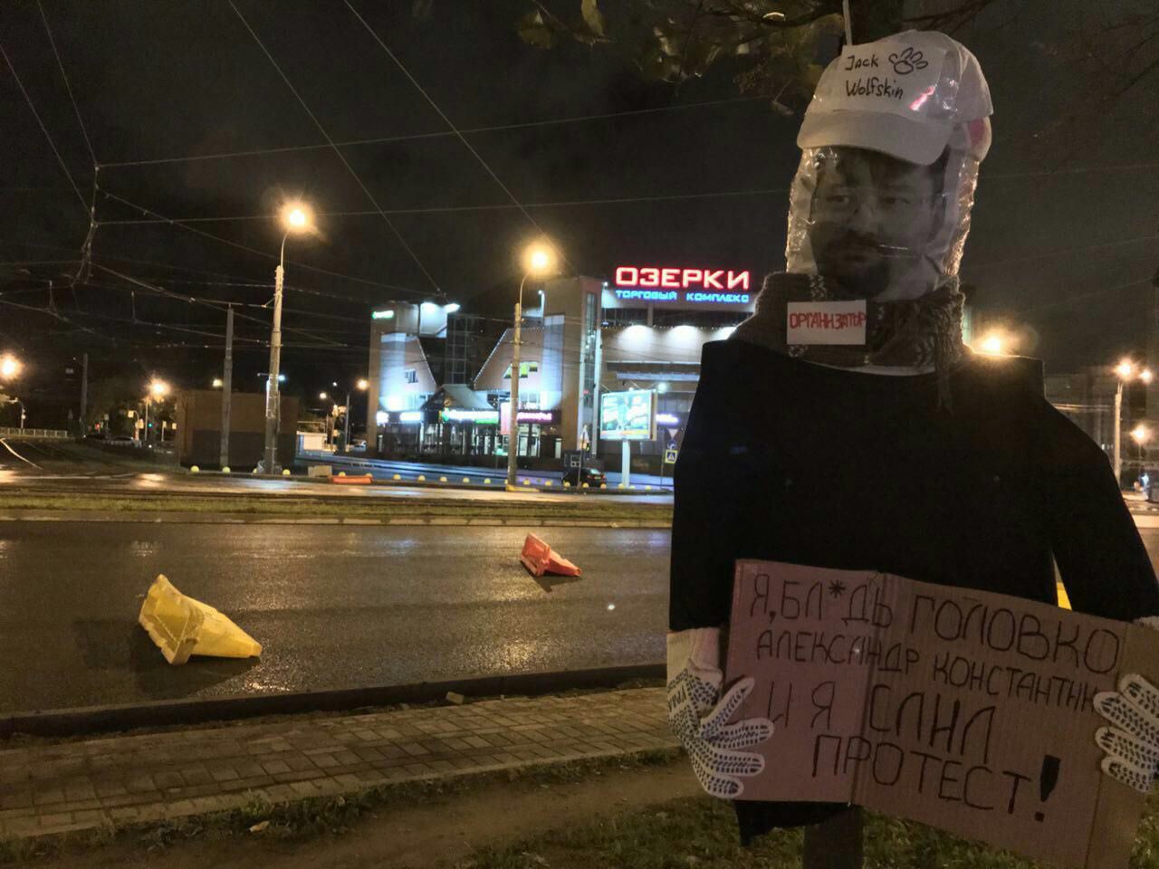 В Озерках активисты установили фигуру с лицом лидера движения «Бездомный дольщик» Александра Головко, который участвовал в организации митинга против повышения пенсионного возраста в Свердловском саду 16 сентября. В руках фигуры оставили табличку с текстом «Я слил протест».