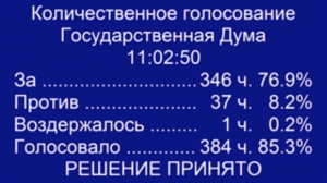 - За внесение соответствующих поправок в Уголовный кодекс проголосовали 346 депутатов (76,9%), против высказались 37 депутатов (8,2%), один депутат воздержался (0,2%). Всего в голосовании приняли участие 384 депутата.