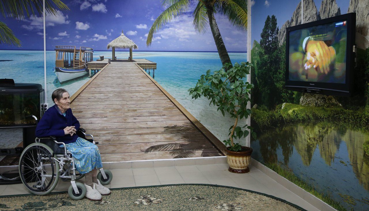 Elizaveta Oleskina calls this a “warehouse” system, arguing that it’s effectively impossible to help people under such conditions. The state resorts to “human storage,” Oleskina says, because officials see only two options for elderly care: people either live at home and a social worker visits once a week (or twice, at best), bringing groceries, or they’re sent off to a clinic.