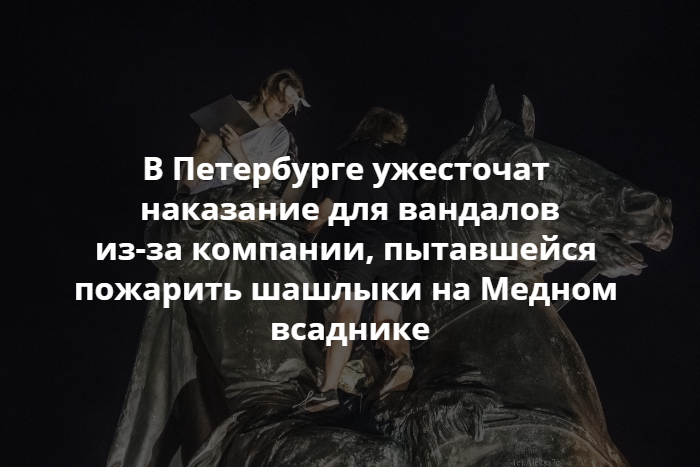 Поводом для подготовки нового законопроекта послужил случай с компанией молодых людей, которые пытались пожарить шашлыки на Медном всаднике. За попытку затащить мангал на памятник им выписали штрафы по 500 рублей. Законопроект уже одобрен профильным комитетом Заксобрания.