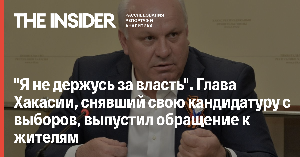 "Я не держусь за власть". Глава Хакасии, снявший свою кандидатуру с выборов, выпустил обращение к жителям