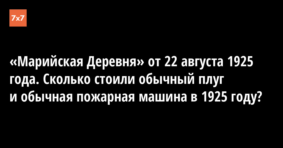 «Марийская Деревня» от 22 августа 1925 года. Сколько стоили обычный плуг и обычная пожарная машина в 1925 году?