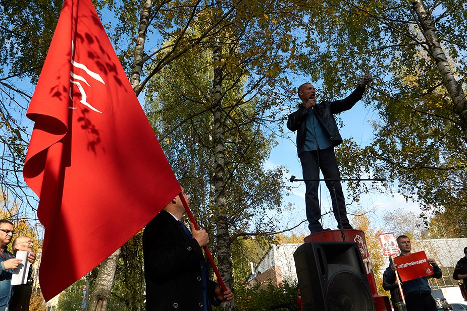 Митинг против повышения пенсионного возраста, «бесконтрольного роста цен на топливо», повышения налогов и тарифов ЖКХ и строительства на Севере мусорного полигона для московских коммунальных отходов состоялся в Мичуринском парке Сыктывкара 22 сентября. Акцию организовало региональное общественное движение «Республиканская Стачка», на нее собралось около 200 человек. За ходом митинга наблюдал корреспондент «7x7».