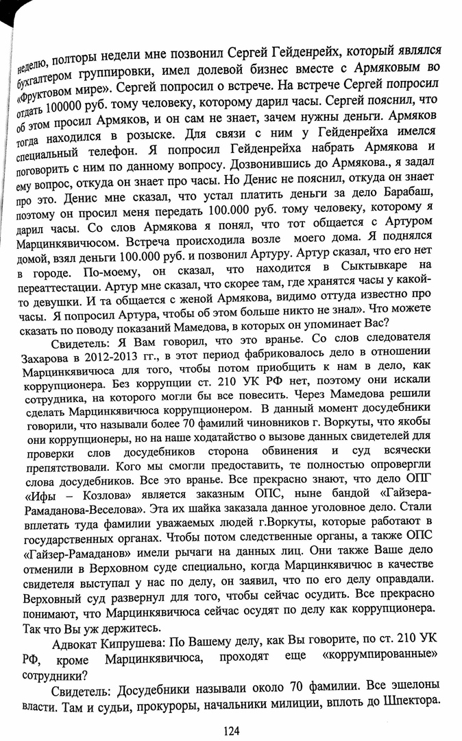 Вот в деле ОПГ Ифы-Козлова указан пространный список высокопоставленных лиц, которые получали деньги за свою помощь, или находили поддержку криминала в неблаговидных делах. А единственным коррупционером на скамье подсудимых оказался А. Марцинкявичюс, который, по признанию одного ил лидеров ОПГ - Р. Мамедова, деньги не получал, в списках не значился. А про судей и судейских слова плохого у следователей и высоких чинов-разоблачителей не звучит.