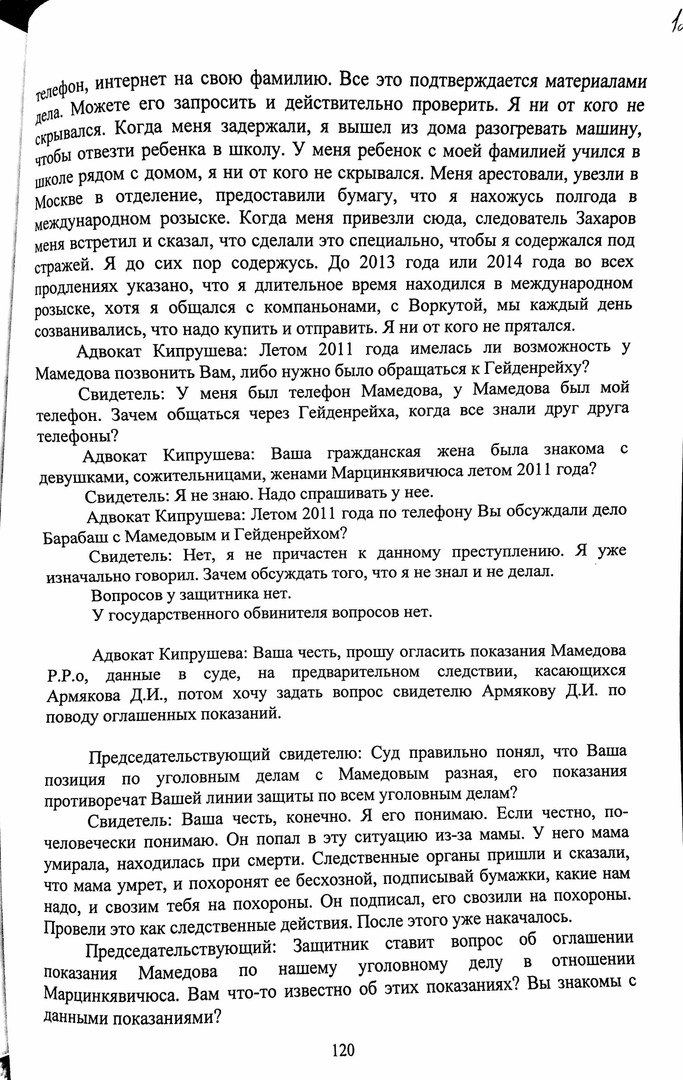 Арестовывают его перед самым Новым годом, в декабре 2011 г. А уже в марте 2012 года он идёт на соглашение со следствием и сдаёт всех своих товарищей, подробно рассказывая о тех преступлениях, которые совершались группировкой на протяжении почти 20 лет. Память ему напрягать особенно не надо было. В средства массовой информации «случайно» попали материалы зашифрованного свидетеля, которые появились задолго до откровений Рафаэля Мамедова. Оставалось дело за малым. Скорректировать в нужном ключе, дополнить тем, что известно ему лично, и подтвердить те факты, которые предложило ему озвучить следствие, т.е. стать свидетелем. А дальше уже провели широкомасштабные задержания. Среди вновь арестованных нашлось ещё парочка-тройка согласившихся работать со следствием, заключивших досудебное соглашение со следствием.