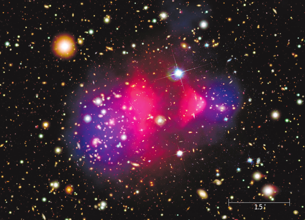 Тем более что есть два набора данных, которые дают очень сильные аргументы в пользу именно темной материи, а не модифицированной гравитации. Во-первых, это большой комплекс космологических данных. Здесь нет возможности вдаваться в детали, но объяснение данных по реликтовому фону, формированию крупномасштабной структуры и т. д. и т. п. без привлечения темного вещества потребует такой странной экзотики, что модель будет выглядеть шаткой, противоестественной и малопривлекательной. Опишем лишь два аргумента, кажущиеся крайне важными.