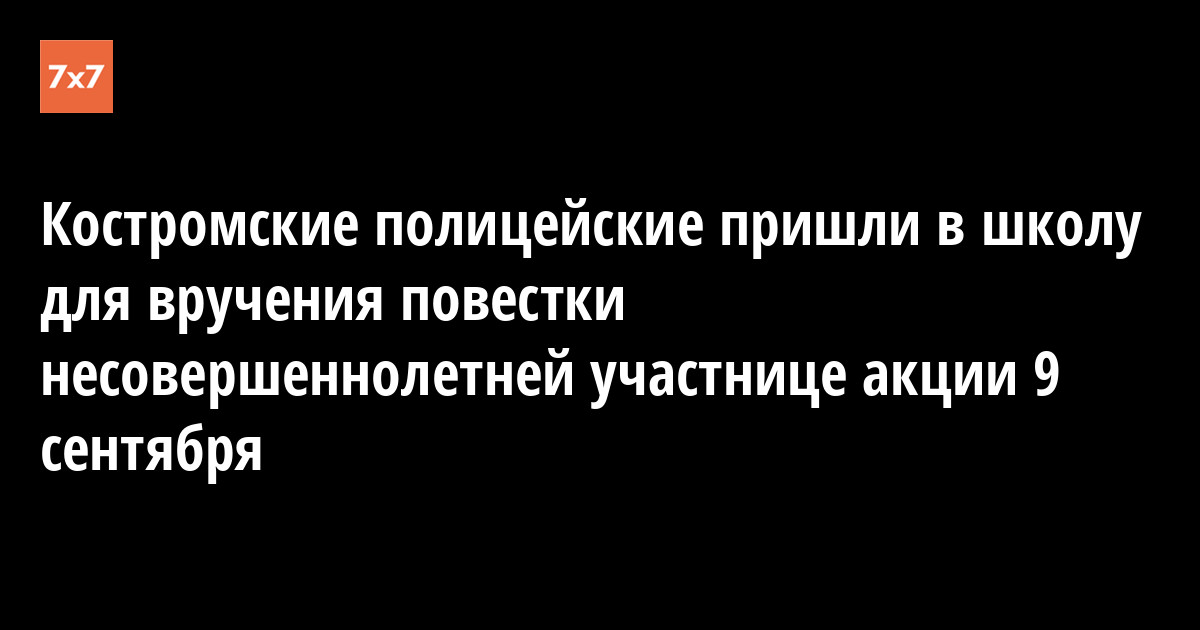 Сотрудники полиции 25 сентября пришли в одну из школ Костромы, чтобы вручить повестку 17-летней Ирине Шумиловой, принявшей участие в акции 9 сентября против пенсионной реформы. Об этом «7х7» рассказала сама девушка.