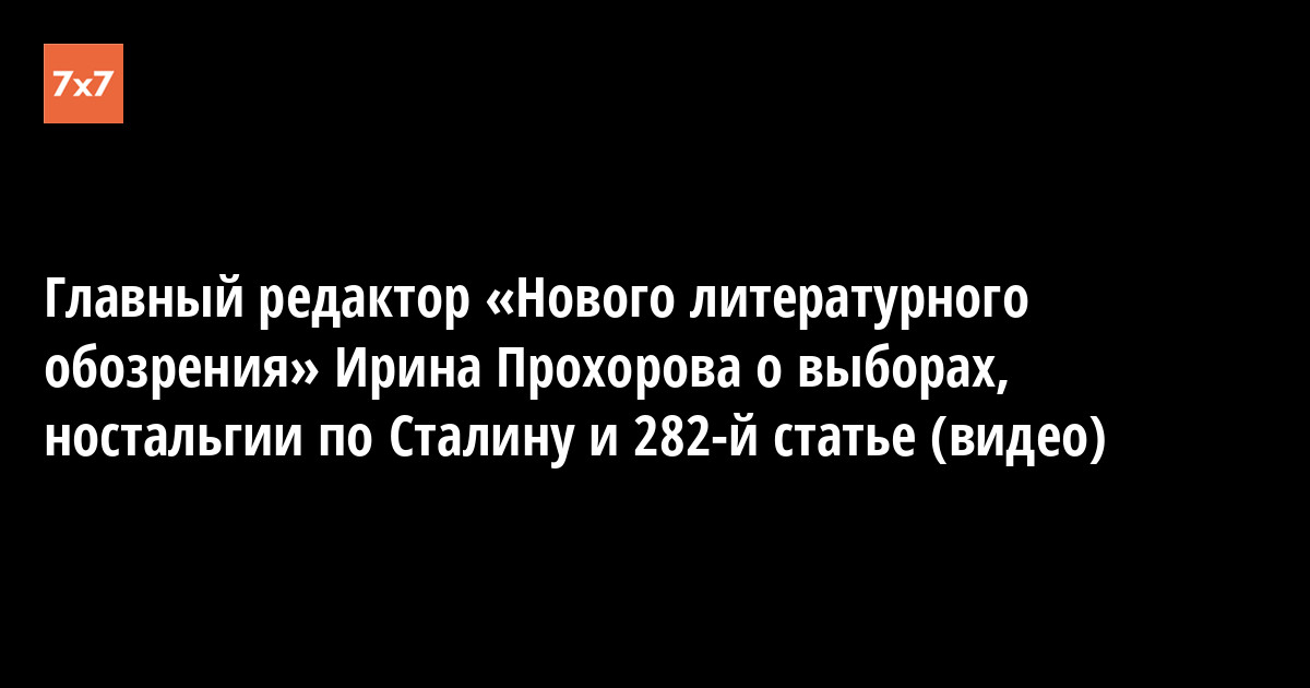 Главный редактор «Нового литературного обозрения» Ирина Прохорова о выборах, ностальгии по Сталину и 282-й статье (видео)