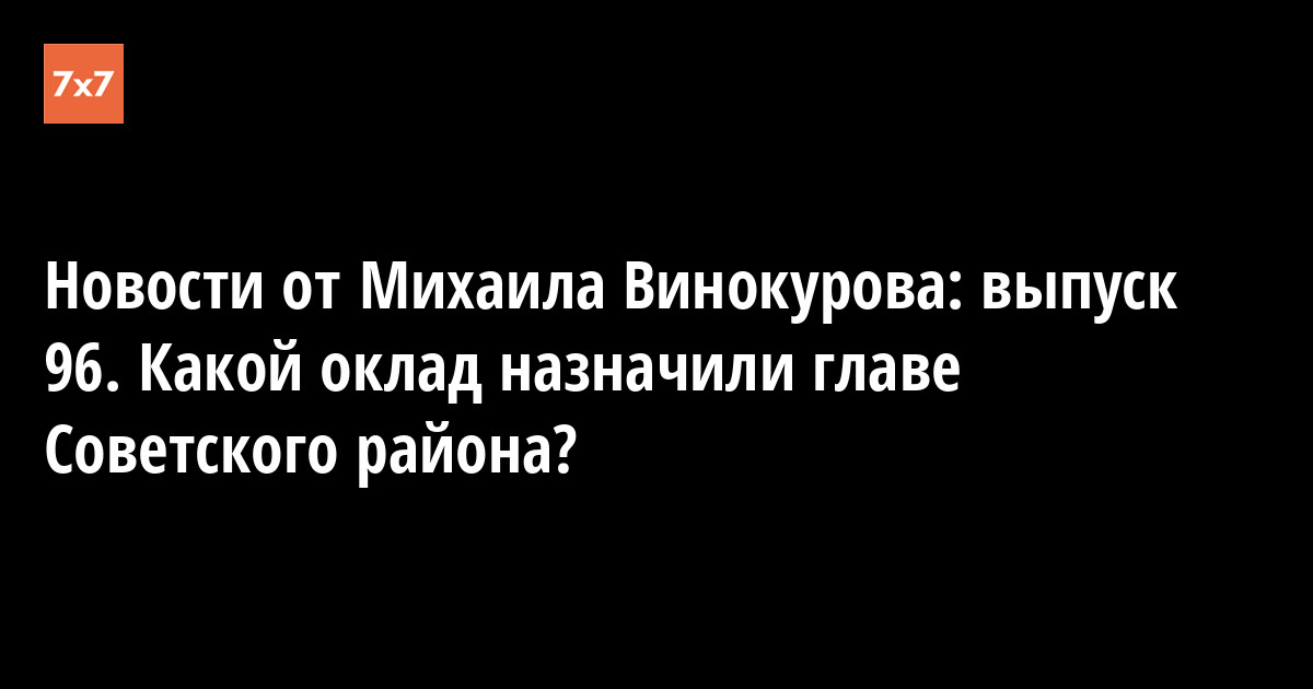 Новости от Михаила Винокурова: выпуск 96. Какой оклад назначили главе Советского района?