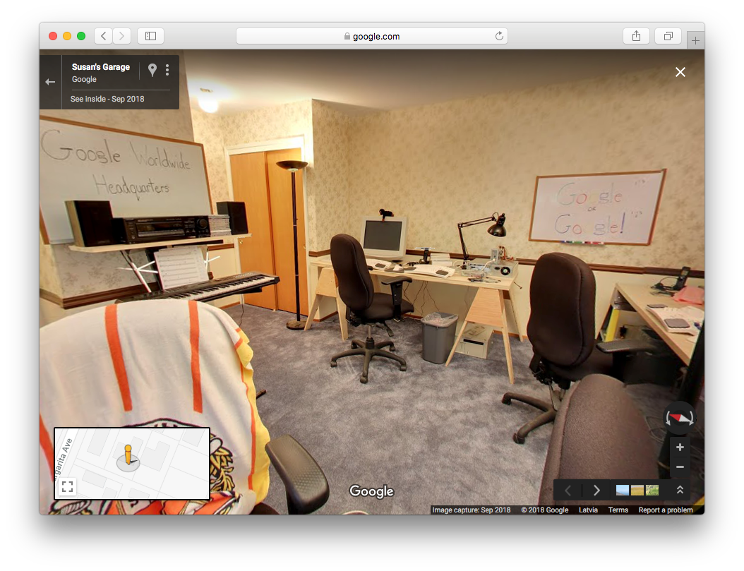 На панорамах в Google Maps появились снимки из гаража в Маунтин-Вью, где создатели компании Ларри Пейдж и Сергей Брин начали работать над своим поисковиком. На панорамах воссоздали атмосферу тех лет: на столах стоят старые ЭЛТ-мониторы, подключенные к полуразобранным системным блокам, а вокруг — бардак.