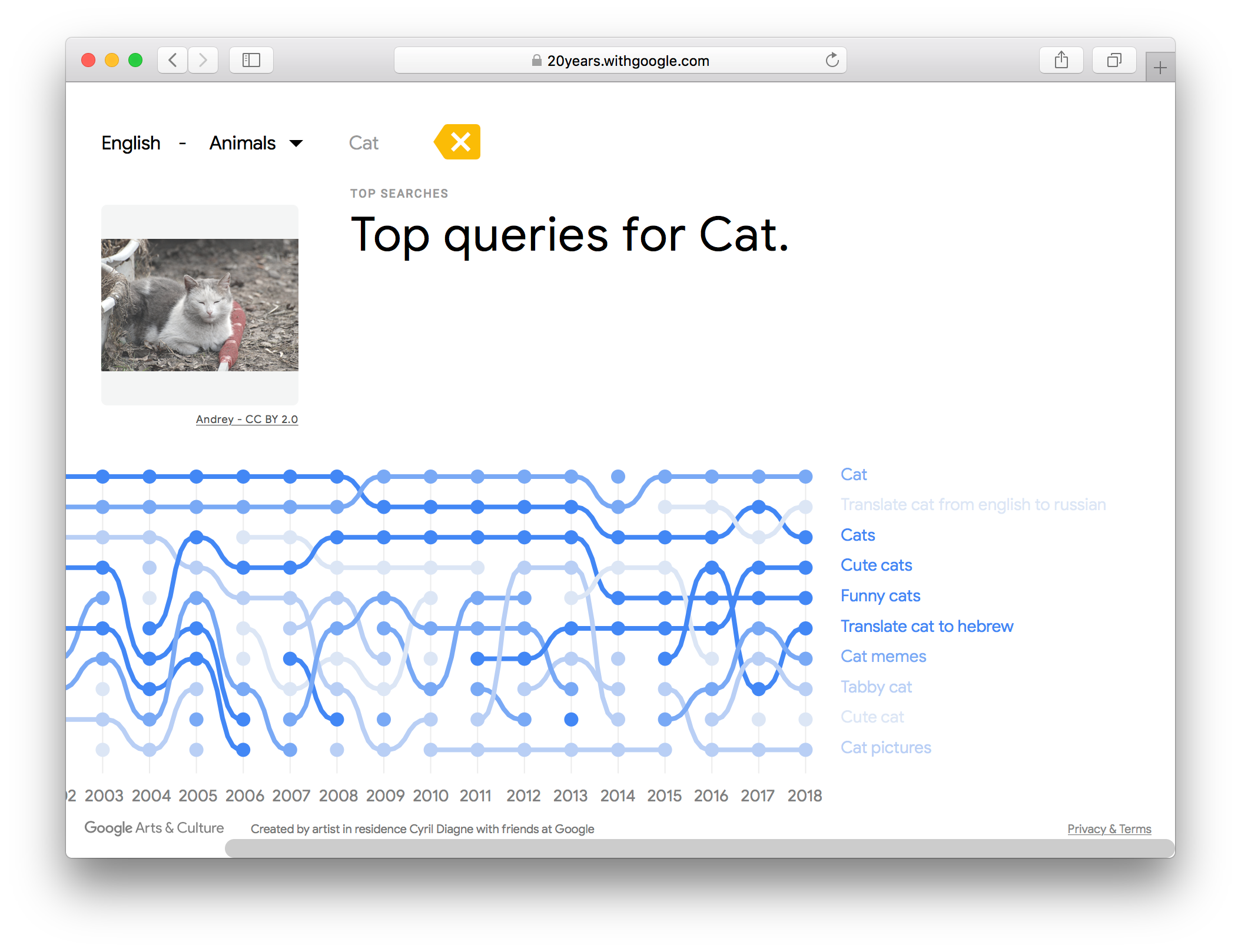 В честь 20-летия Google запустила сайт, на котором появляются случайные факты о поиске в интернете. Например, такой: «Больше всего про Айн Рэнд мы искали в 1999 году». Или такой: «Мы всегда искали собак чаще, чем других животных».