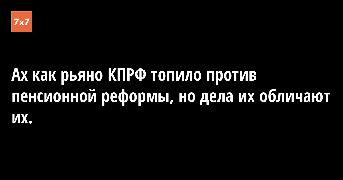 Ах как рьяно КПРФ топило против пенсионной реформы, но дела их обличают их.